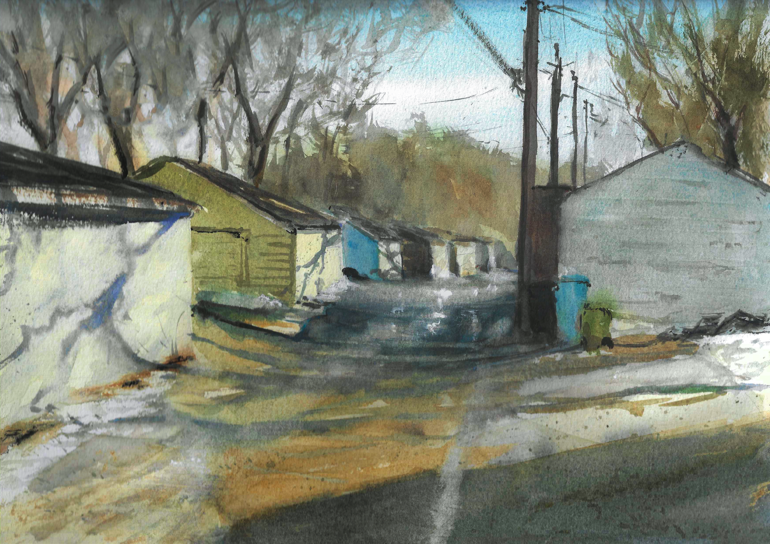 early spring alley, 9×12, watercolor on paper