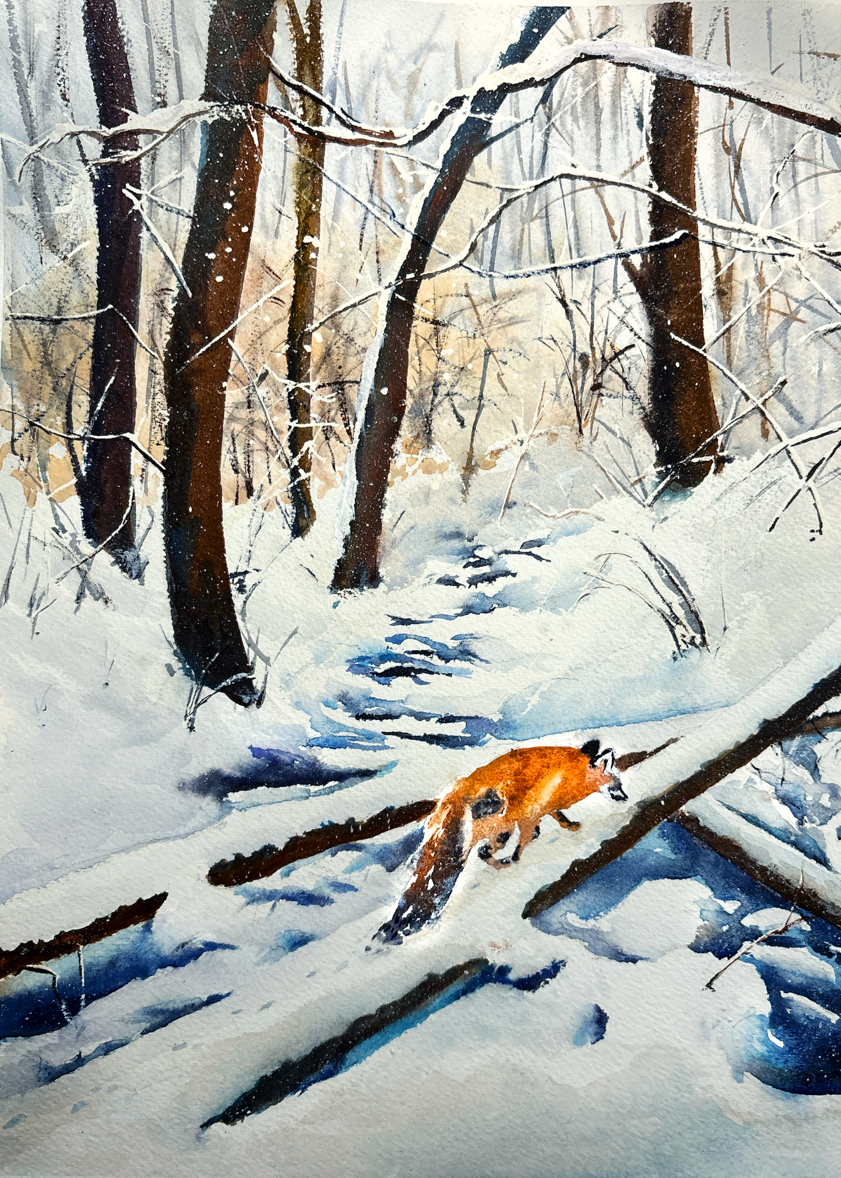 fox in theo wirth, 9×12, watercolor on paper