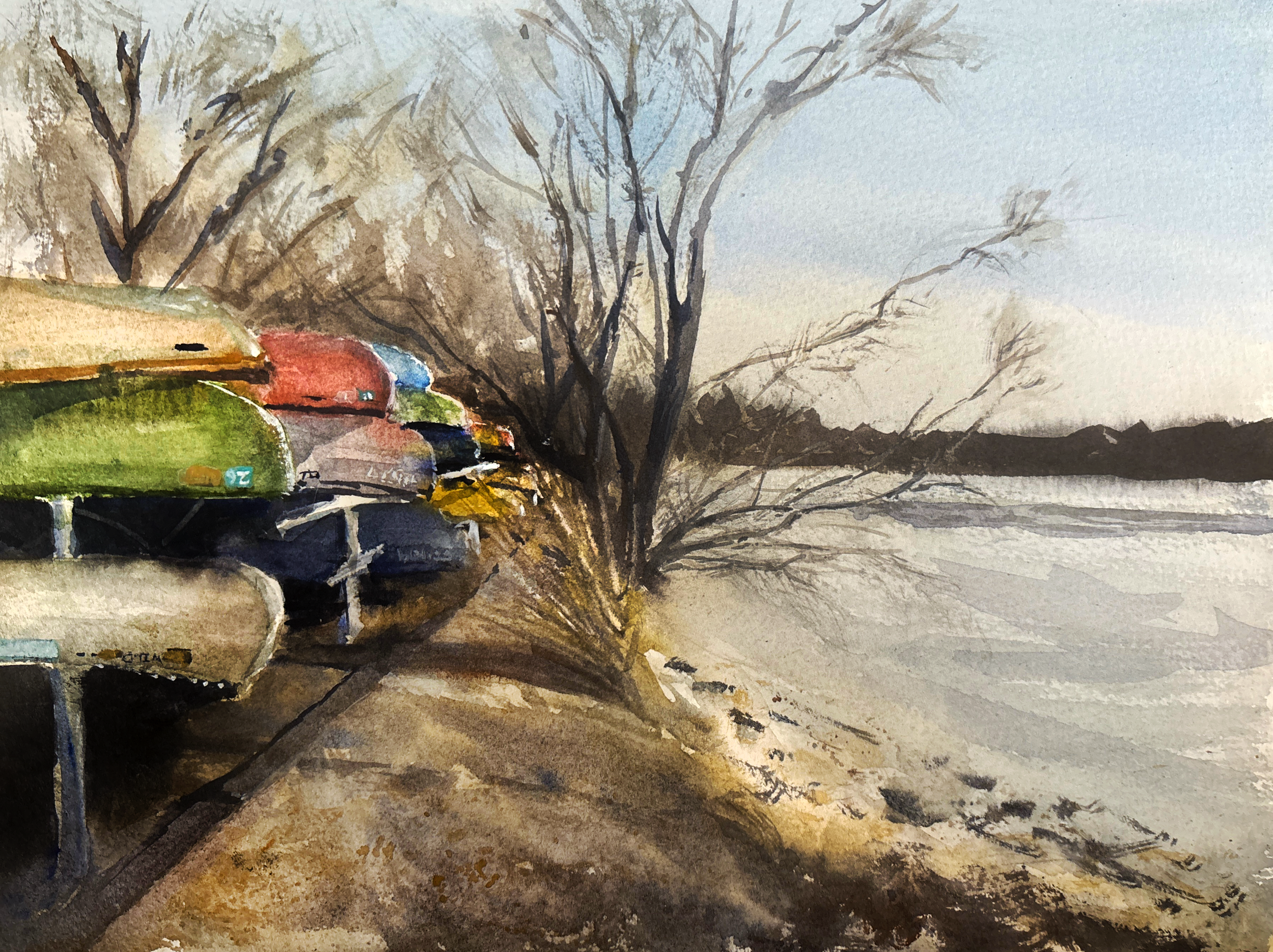 white bear canoes, 9×12, watercolor on paper