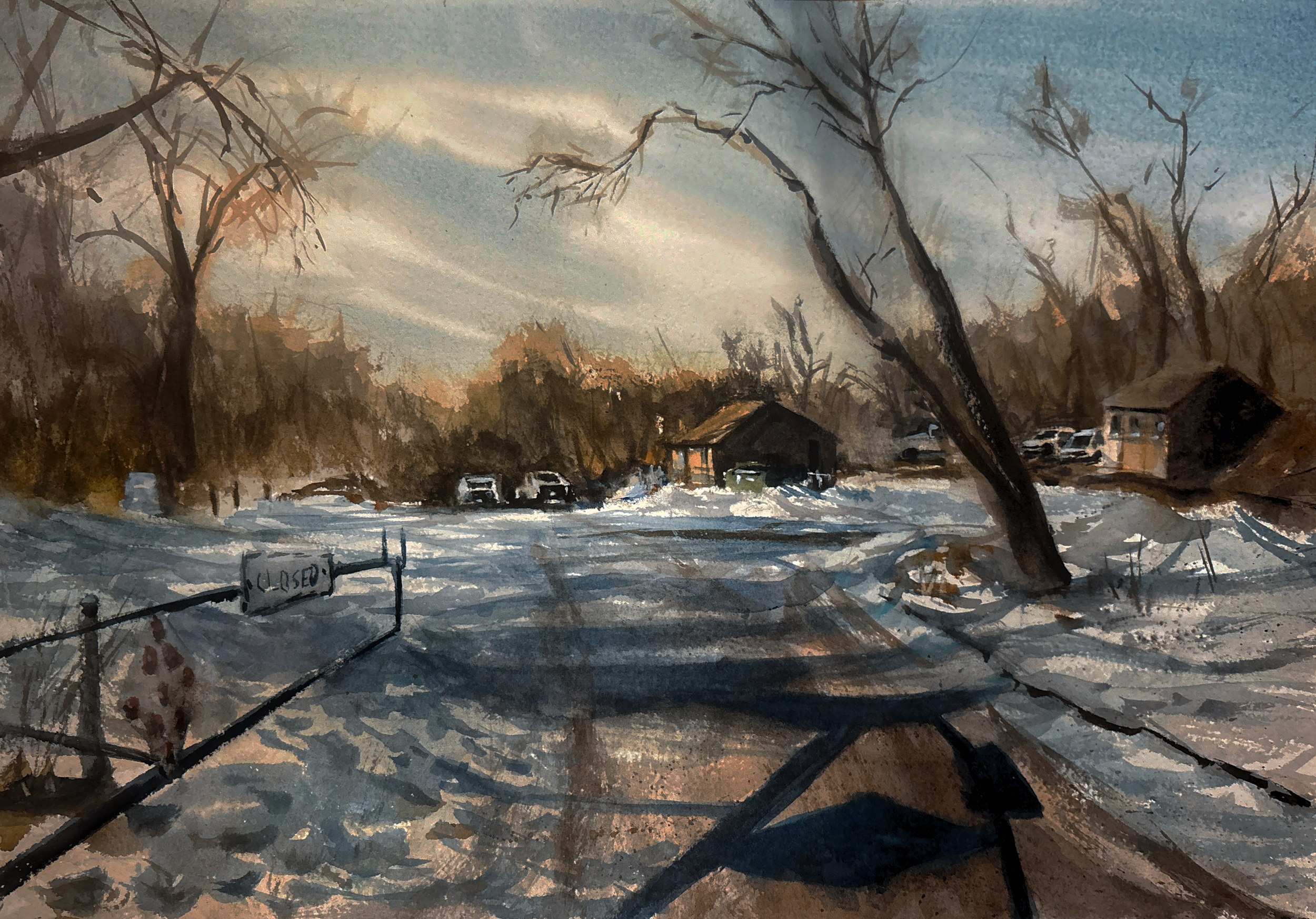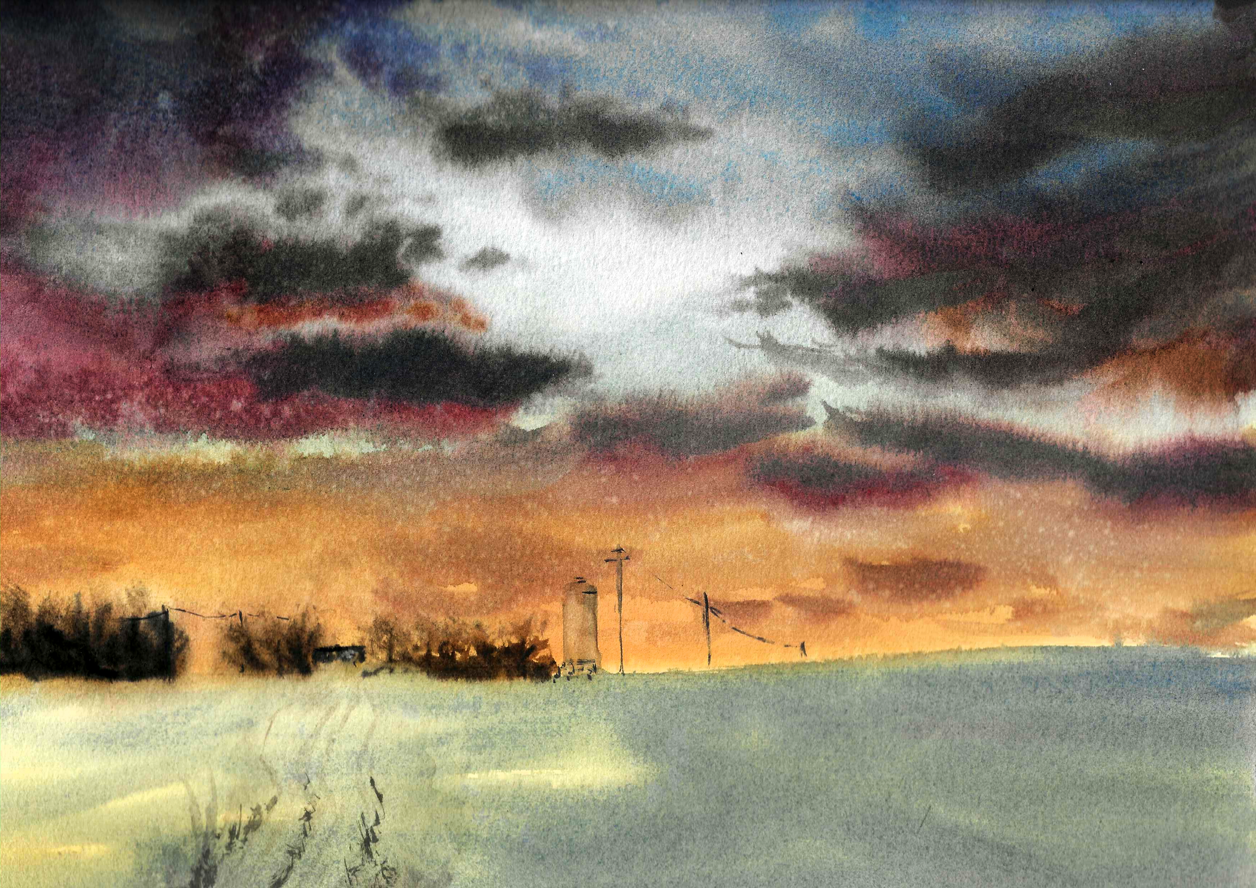 winter sunset, 9×12, watercolor on paper