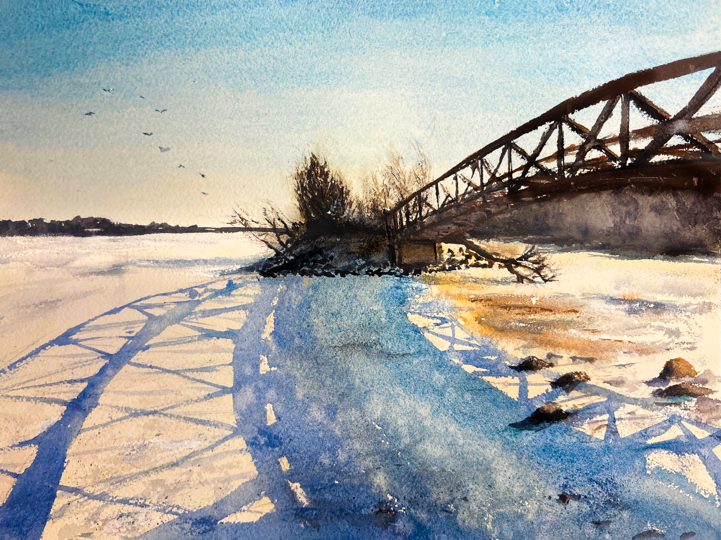 white bear bridge, 9×12, watercolor on paper